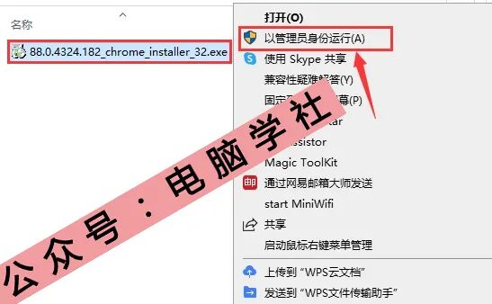 鼠标右击88.0.4324.182_chrome_installer_32.exe选择以管理员身份运行