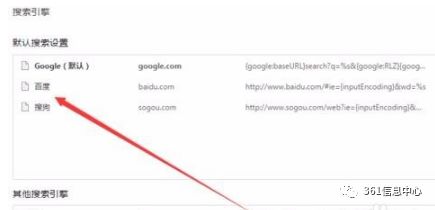 然后将百度或者搜狗设置为默认搜索引擎