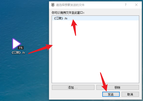以电脑传输手机为例,使用方法非常简单,直接将文件拖拽至软件中,再选择软件中的文件,点击发送,这时会弹出发送选项弹窗,我们点击弹窗中的手机名称,上方会出现IP地址和端口,至此点击发送按钮即可。