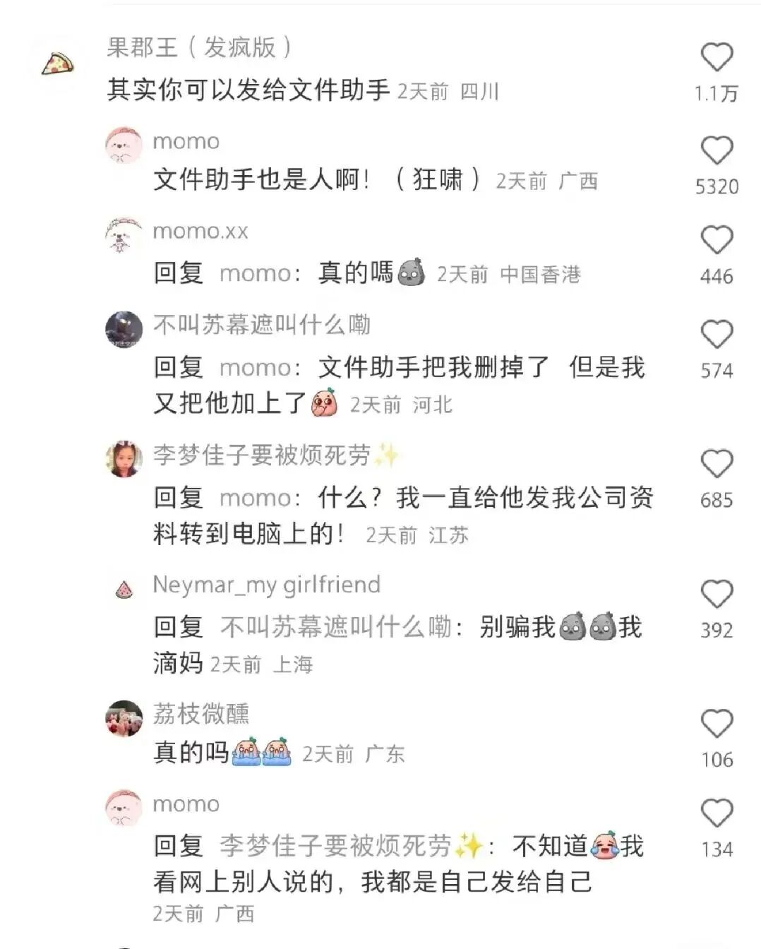 大家纷纷在帖子下面留言,表示平时会把各种乱七八糟地东西都往微信传输助手上发。