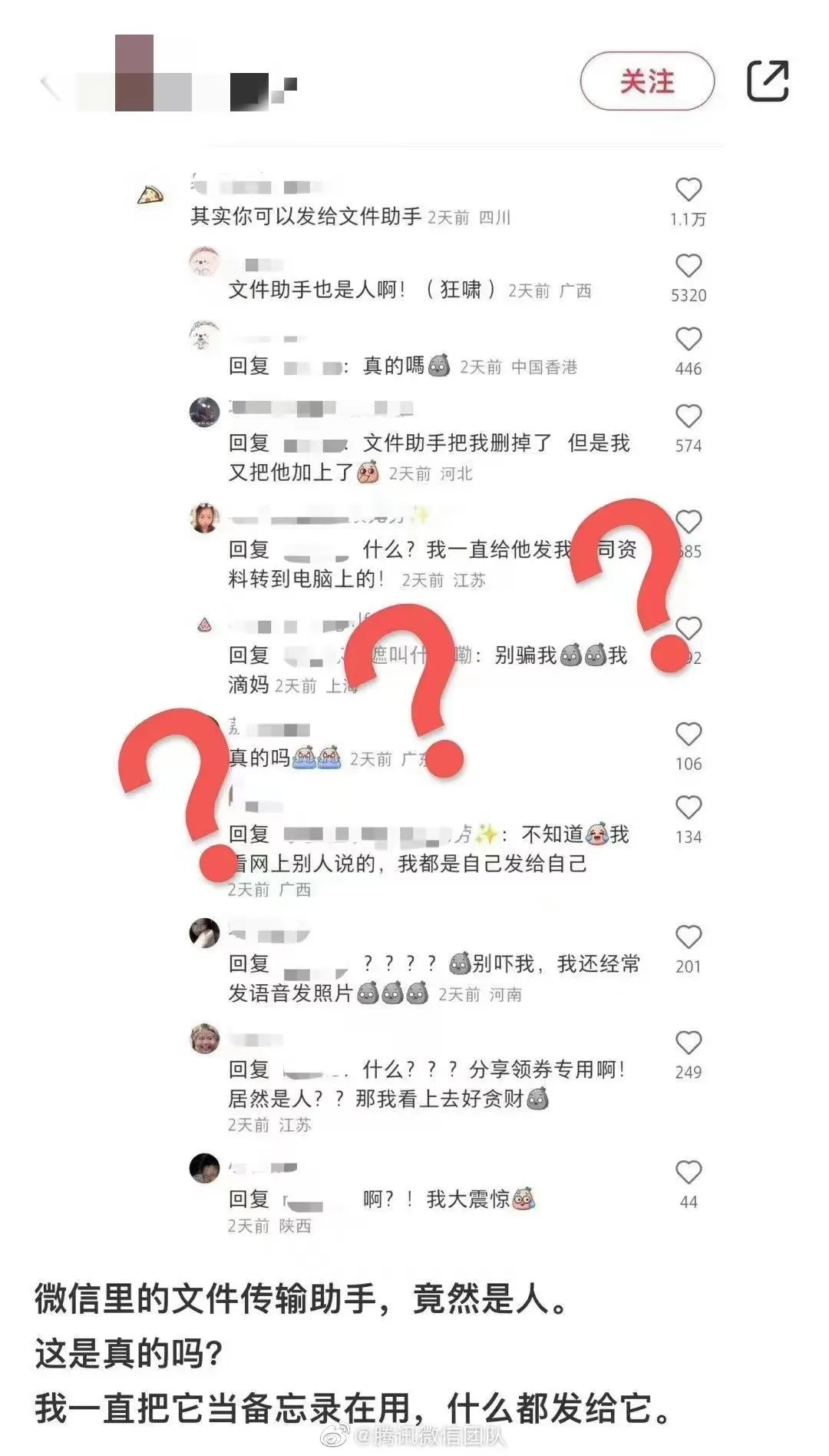 6月27日,腾讯微信团队发布声明,否认文件传输助手是真人。腾讯微信团队表示,你发给‘文件传输助手’的小秘密,只有你自己知道。