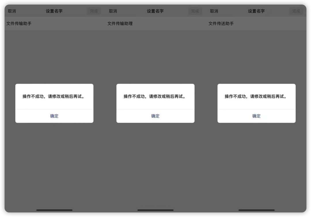 相似的名字都不行,比如文件传输助手、文件传输助理、文件传送助手等类似的名称,也都不可以设置,而是会提示操作不成功,请修改或稍后再试。