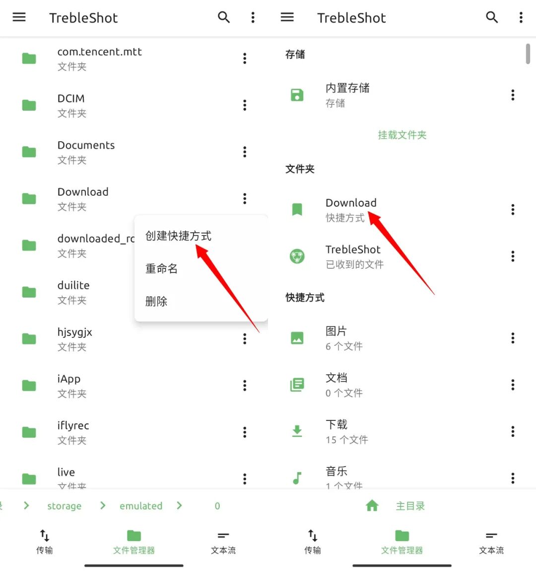 其四是 TrebleShot 能够为文件夹【创建快捷方式】。
