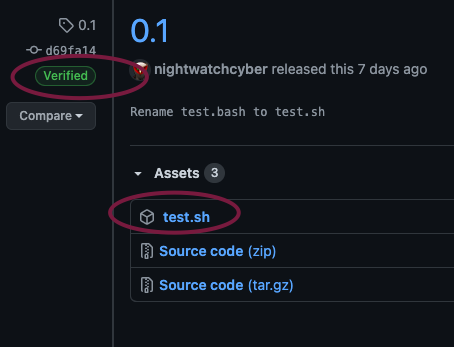 3、Alice 公开了包含 shell 脚本 test.sh 的release 作为单独资产。