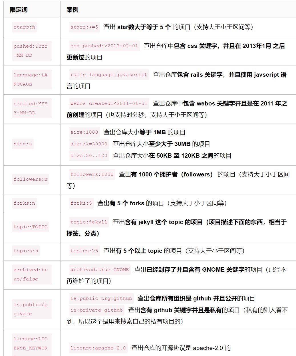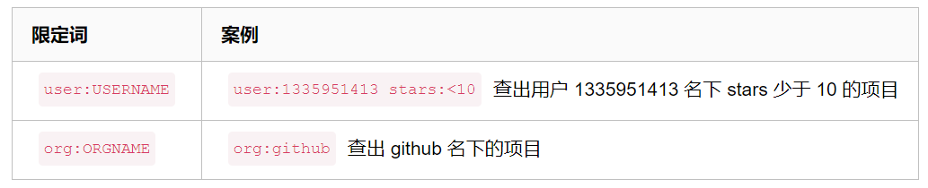 干啥的?相当于给搜索结果添加过滤条件,看下下面的案例你就知道啦,过滤 github 的搜索结果,更精确搜索项目