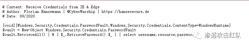 一条命令获取IE浏览器保存网站的账号和密码信息