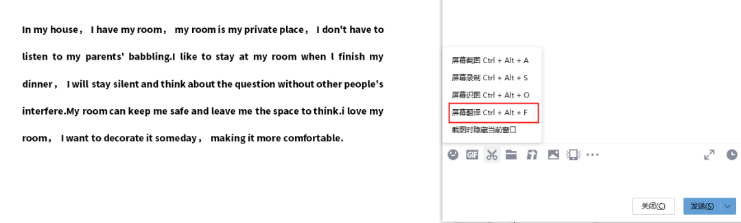 操作上也是不难,进入QQ后,打开聊天框,使用快捷键【Ctrl+Alt+F】调出截图翻译功能。