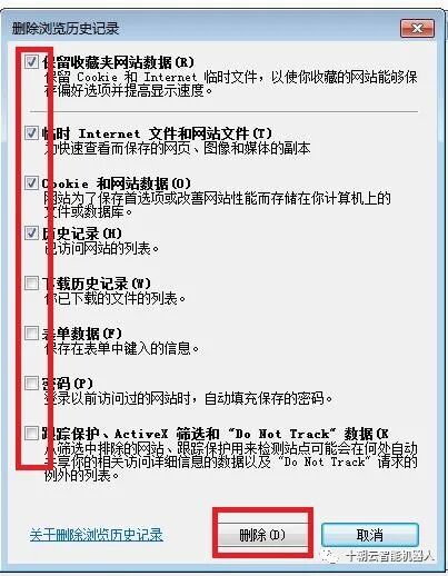 3. 在弹出的删除历史记录界面中选择需要删除的内容,并点击删除按钮