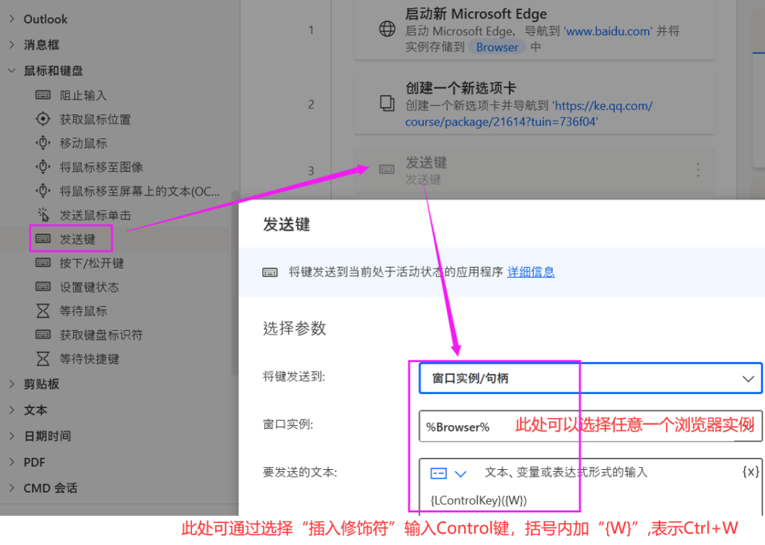 对于这一种情况,其实也很简单,虽然Power Automate没有直接提供关闭当前页的功能,但是,浏览器本身提供了相应的快捷键!