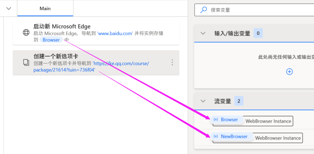 首先,如果都是通过前面的Power Automate步骤打开的多个页面,那么,在打开的时候,实际就生成了不同的变量: