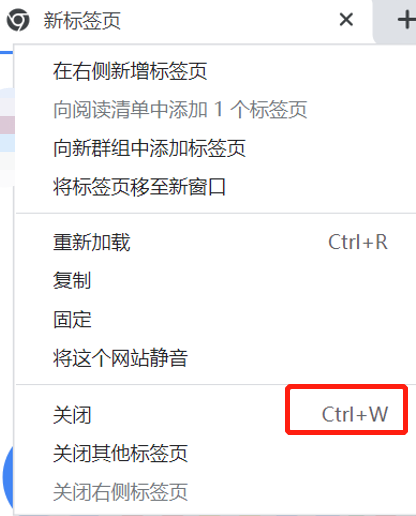 比如Google Chrome和微软的Edge浏览器,关闭当前页的快捷键都是Ctrl+W,这个可以右键单击浏览器页面顶部标签查看: