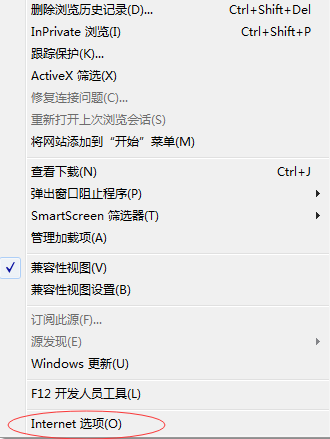 1)点击工具→Internet选项