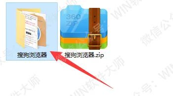 1、把下载的压缩包,用压缩软件解压出来,然后双击打开【搜狗浏览器】文件夹。