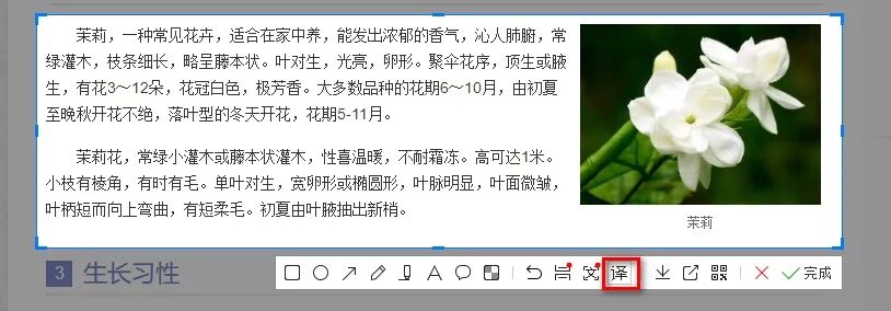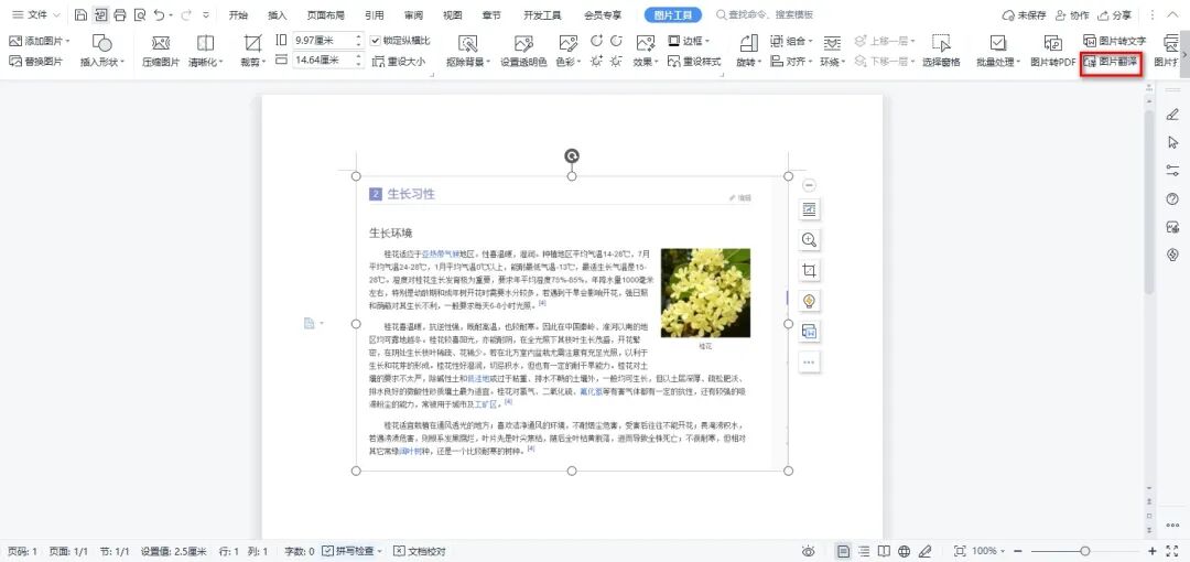 浏览网页时,截图需要翻译的内容,然后新建一个空白文档,插入截图,选中图片后点击菜单栏中的图片翻译功能。我们很快就能得到截图中提取出来的文字内容及翻译结果,翻译准确度还不错。