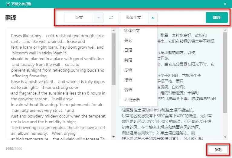 在翻译窗口中,设置翻译语言,点击翻译即可得到准确的翻译结果,最后复制翻译结果即可。