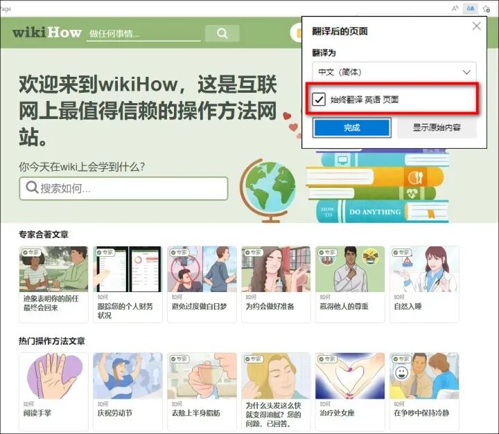 大家还可以勾选始终翻译英语页面这个选项,之后每当我们打开一个英语页面,它都能自动进行翻译。