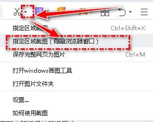 上面的操作只在网页上进行截图,其实,非网页的截图也可以实现,方法是点击剪刀右边的小三角号,然后在下拉菜单中选择隐藏浏览器窗口截图后进行截图,后面的操作跟上述相同。
