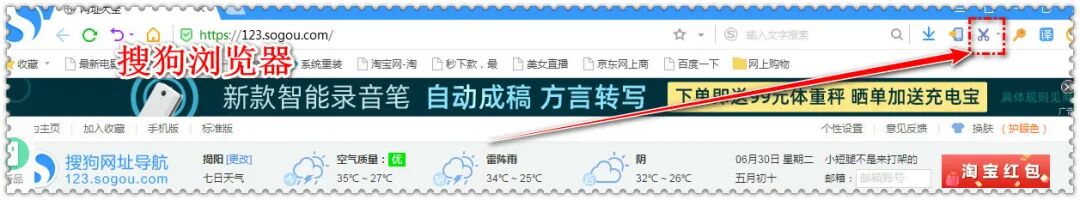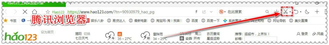 第一步:点击浏览器的小剪刀截图工具。