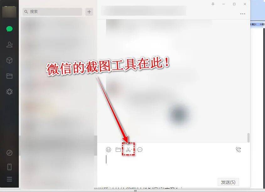 从上图可以看出,这个剪刀状的图标就是截图工具。这个图标是不是似曾相识?没错,在电脑版的微信发送窗口的工具栏中也有这把剪刀。