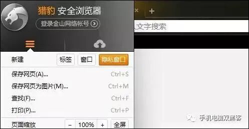 金山猎豹开启禁止追踪的方法比较简单,我们在浏览器中选择新建隐私窗口后就可以成功开启该功能,如下图所示: