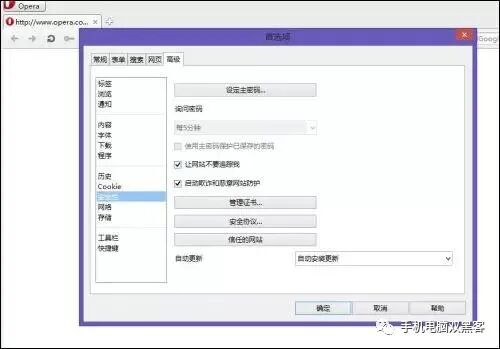来自挪威的Opera浏览器一直是一个不如忽视的存在,这里我们自然也要介绍一下opera如何开启禁止追踪了,方法也很简单,进入设置后选择高级,然后我们在安全性选项可以看到让网站不要追踪我,勾选即可。