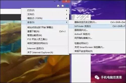 打开微软IE10,点击工具—安全—InPrivate浏览,或者执行Ctrl+Shift+P组合键,我们就可以成功激活微软InPrivate浏览模式,当该模式处于激活状态时,我们可以在浏览器左上角看到Inprivate的图标,如下图所示: