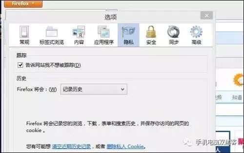 作为微软的老对头,自然不能忘掉Firefox浏览器,开启的方法也很简单,点击左上角的Firefox按钮,选择选项标签后进入隐私设置,勾选告诉网站我不想被追踪即可。