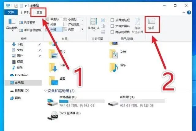 1、随意打开一个文件夹,点击上面的查看,选择选项: