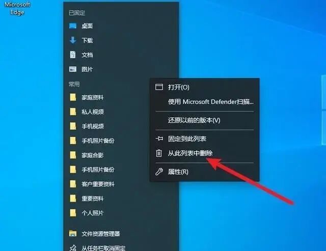 最简单的方法,就是在对应的文件夹上面右键单击,选择从此列表中删除即可: