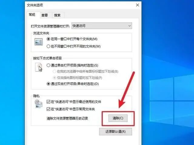 2、在文件夹选项里,只需要点击下面的清楚,就可以一次性的把所有的文件夹记录删除掉: