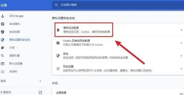 3、可以看到,这里出现了清除浏览器数据这一选项,这个就是我们删除浏览器记录的地方: