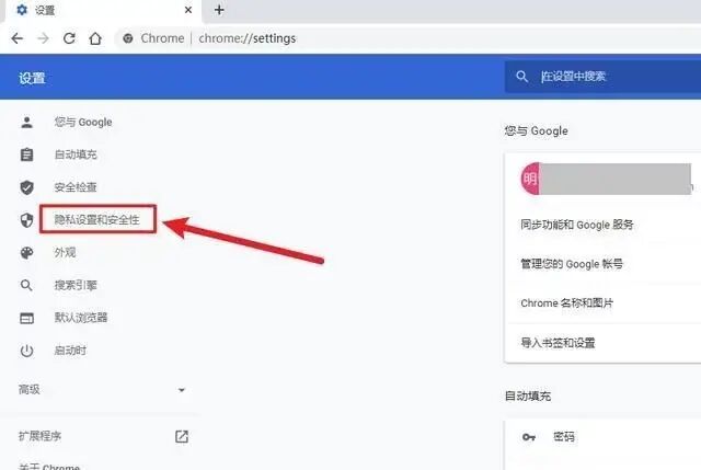 2、在设置界面,点击左侧的隐私设置和安全性: