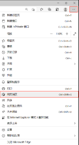 1、双击进入软件,打开需要进行长截图的网页,点击右上角的三个点按钮,选择下方选项列表中的网页捕获。