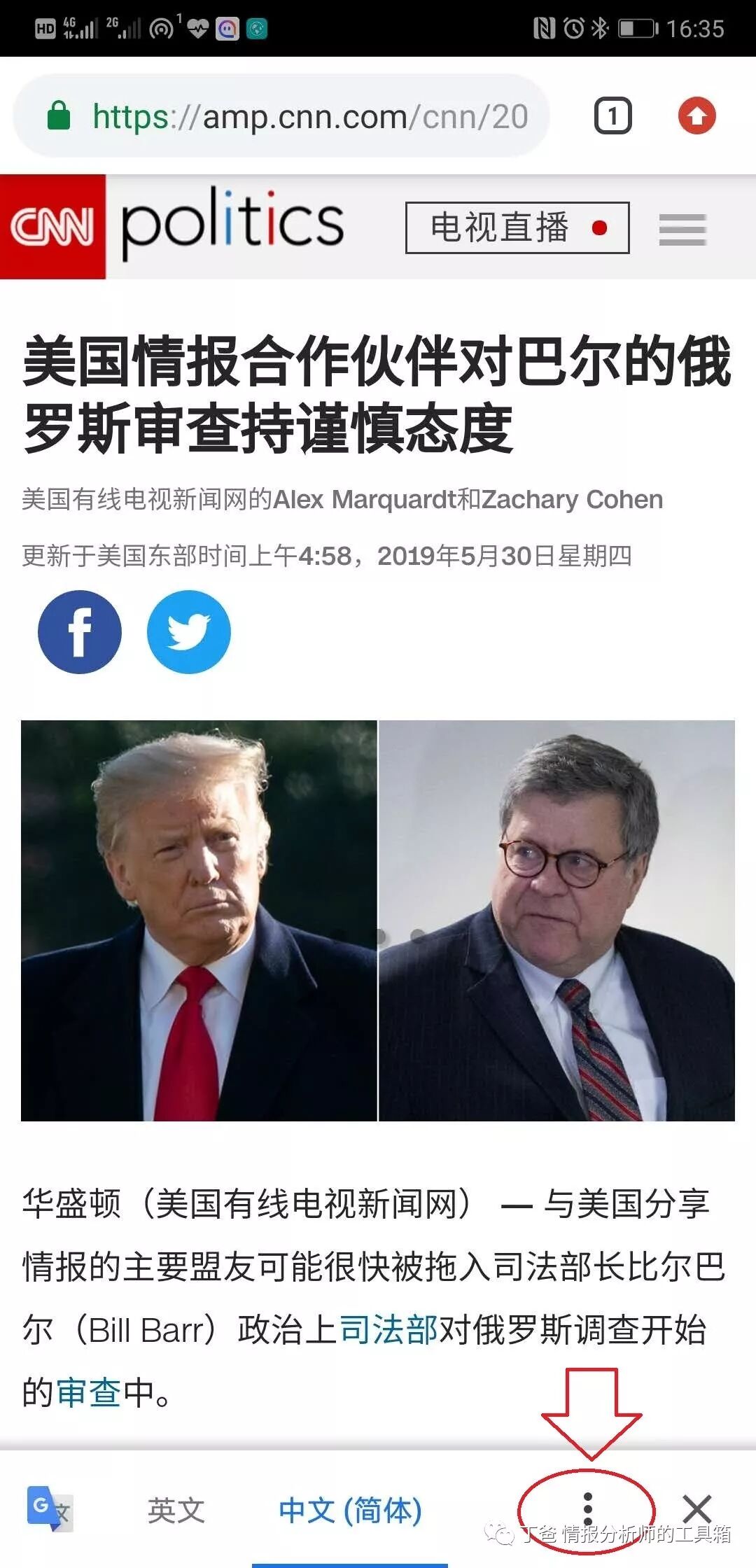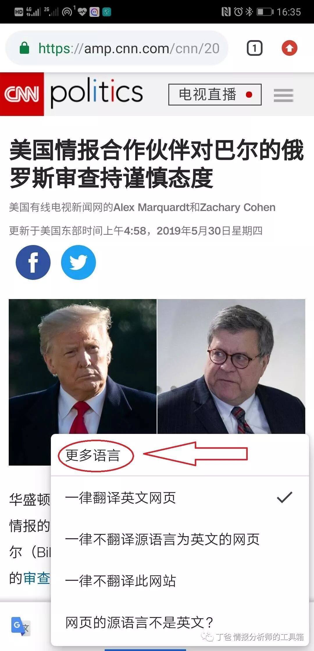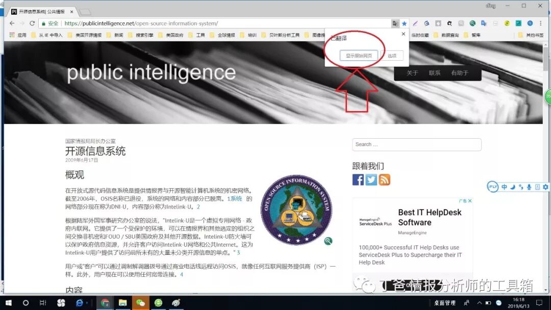 6、点击该翻译图标,可选择查看原网页,或者翻译该网页。