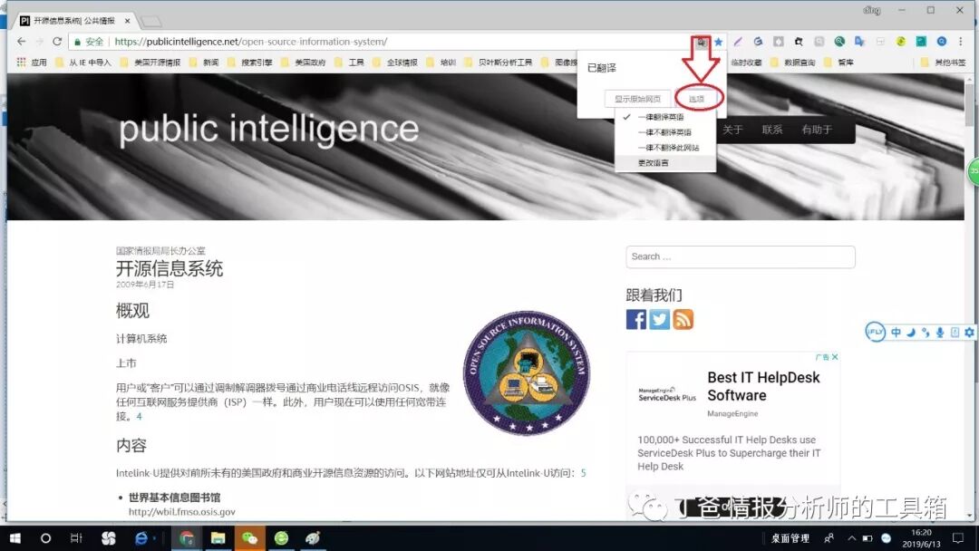 5、设置完成后,用chrome浏览器打开外文网页时,就可以自动翻译成常用语种了。在页面最下面也有功能设置按钮。