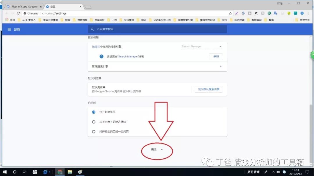 2、将设置页面拉到最底部,打开底部高级菜单选项。