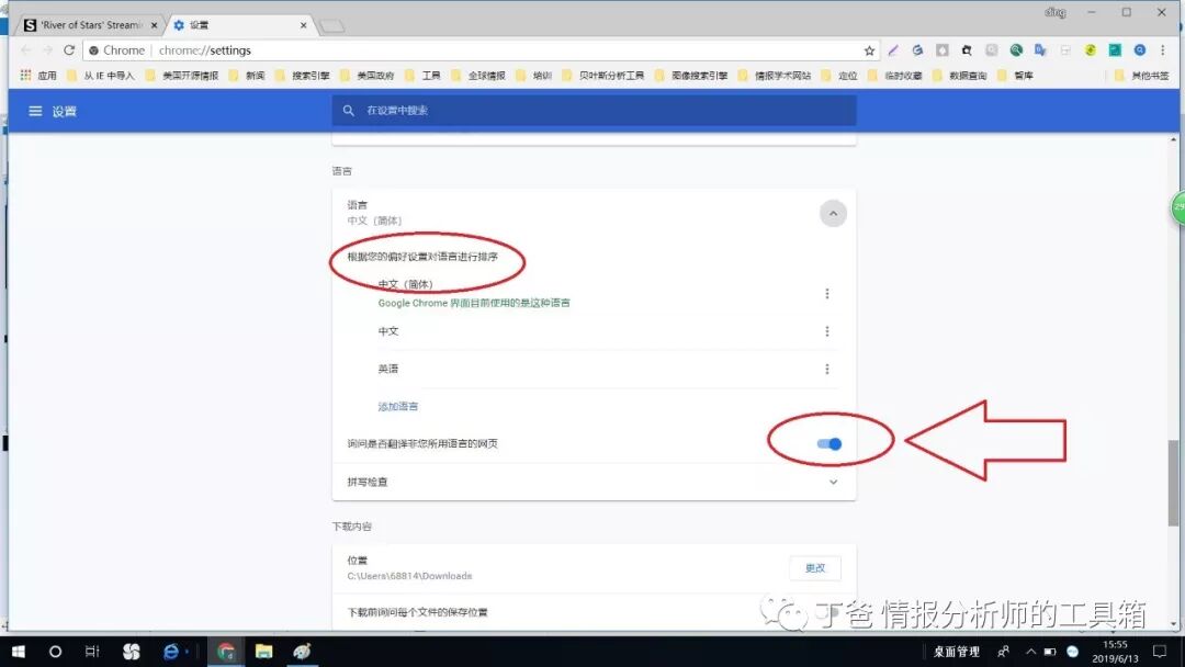 4、设置常用语言,并打开询问是否翻译非您所用语言的网页功能。这时你再用浏览器打开外文网页,浏览器就可以自动翻译成你常用的语种了。