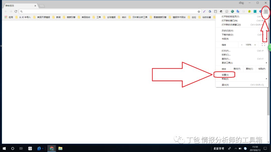 1、打开电脑上的chrome浏览器,点击右上角的功能按钮,选择设置。