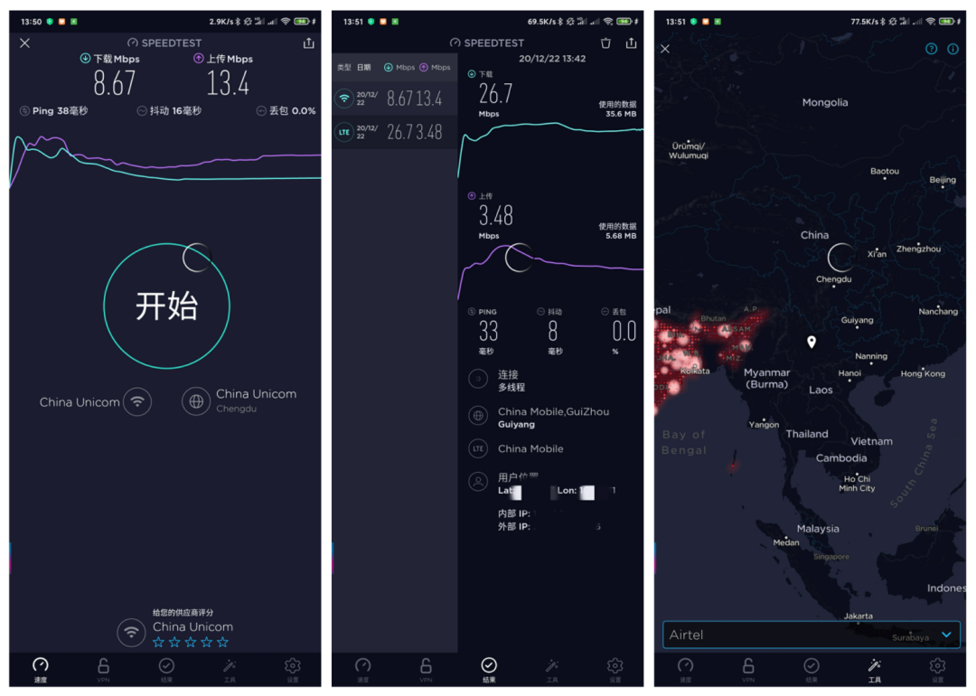 最佳手机网速测试工具,全球排名第一的网络速度测试网站Speedtest.net安卓客户端,支持查看Ping值、下载速度、上传速度,实时图表显示测试结果,排除故障以分析真实网速,跟踪过往网络测试结果可以得出详细报告。详情点此