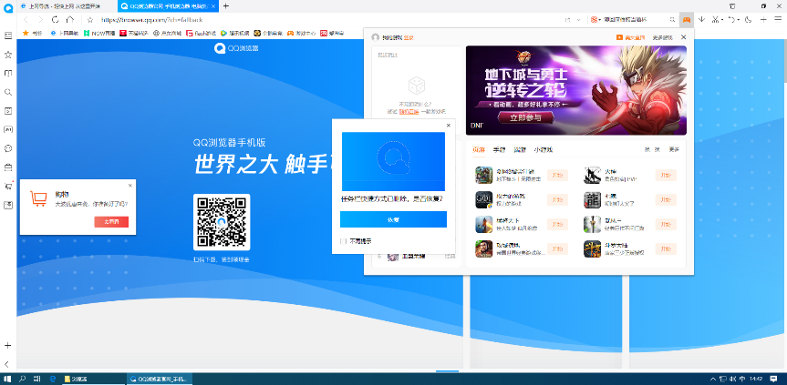 2、安装结束后浏览器页面内广告弹窗、并提示固定快捷方式到任务栏。