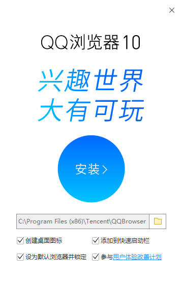 1、安装过程自动勾选设为默认浏览器、及参加用户体验计划外无明显槽点,同样需要手动点击自定义安装才能看到相关选项。