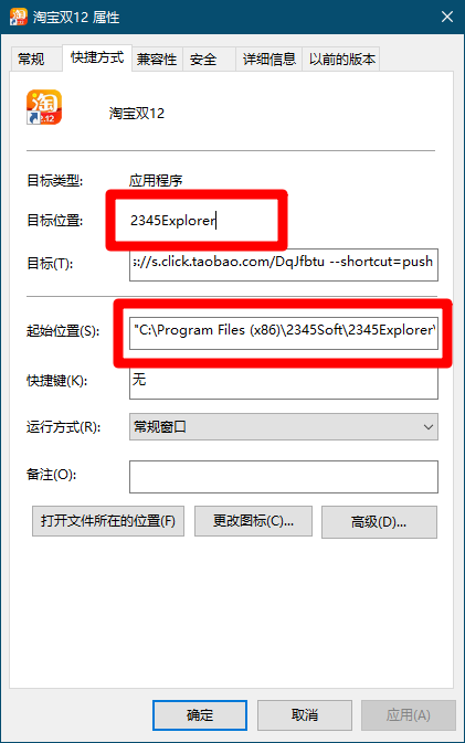 是谁干的呢?我们右键点击这个图标,选择属性,看一下目标位置和起始位置。