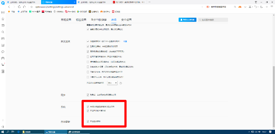 4、设置页面自动勾选关闭后继续运行后台应用、自动更新、及没什么用处的剪切板扩展功能