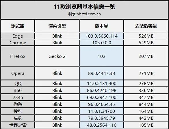 本次测试我们选择了11款浏览器,它们的基本信息如下: