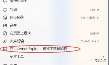 4、重启edge浏览器,如果遇到需要使用IE浏览器兼容模式打开的网站,就点击edge浏览器右上角的三个点图标,在弹出的菜单中选择【在Internet Explorer 模式下重新加载】