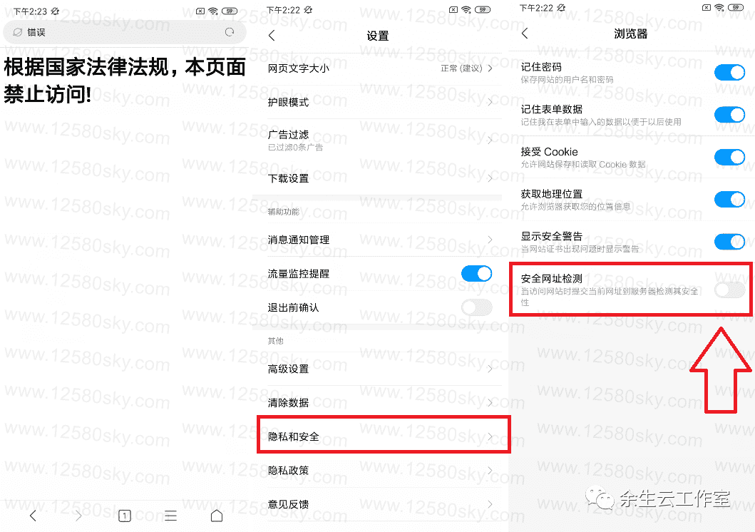方法:打开小米浏览器->设置->隐私和安全->关闭安全网址检测即可