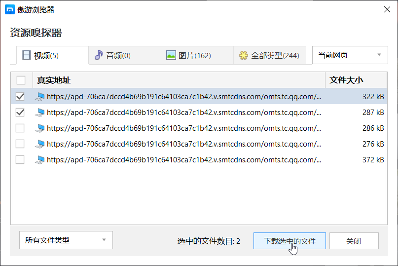 资源嗅探器,可以说是傲游浏览器的特色功能,它可以提取出当前网页包含的媒体内容,例如视频、音频和图片。
