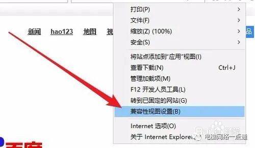 3、在打开的浏览器设置菜单中,我们点击兼容性视图设置菜单项。