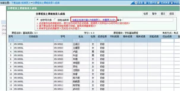 设置后录入成绩框中备注栏前会显示当前正在进行第X次成绩录入,共需录入X次蓝色字体(如下图所示),如不显示说明兼容性未设置成功,需重新设置。