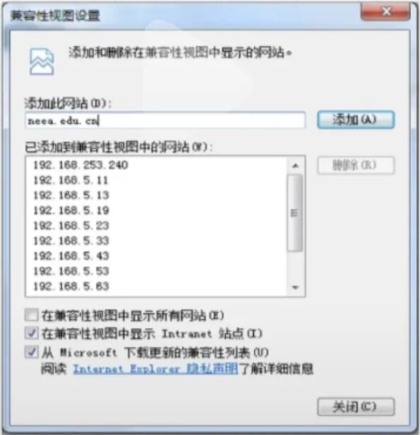 ?说明:IE10及以下版本浏览器无需任何操作即可直接访问报名官网,IE11及以上版本浏览器,请将"neea.edu.cn"域名添加到兼容性站点列表中。